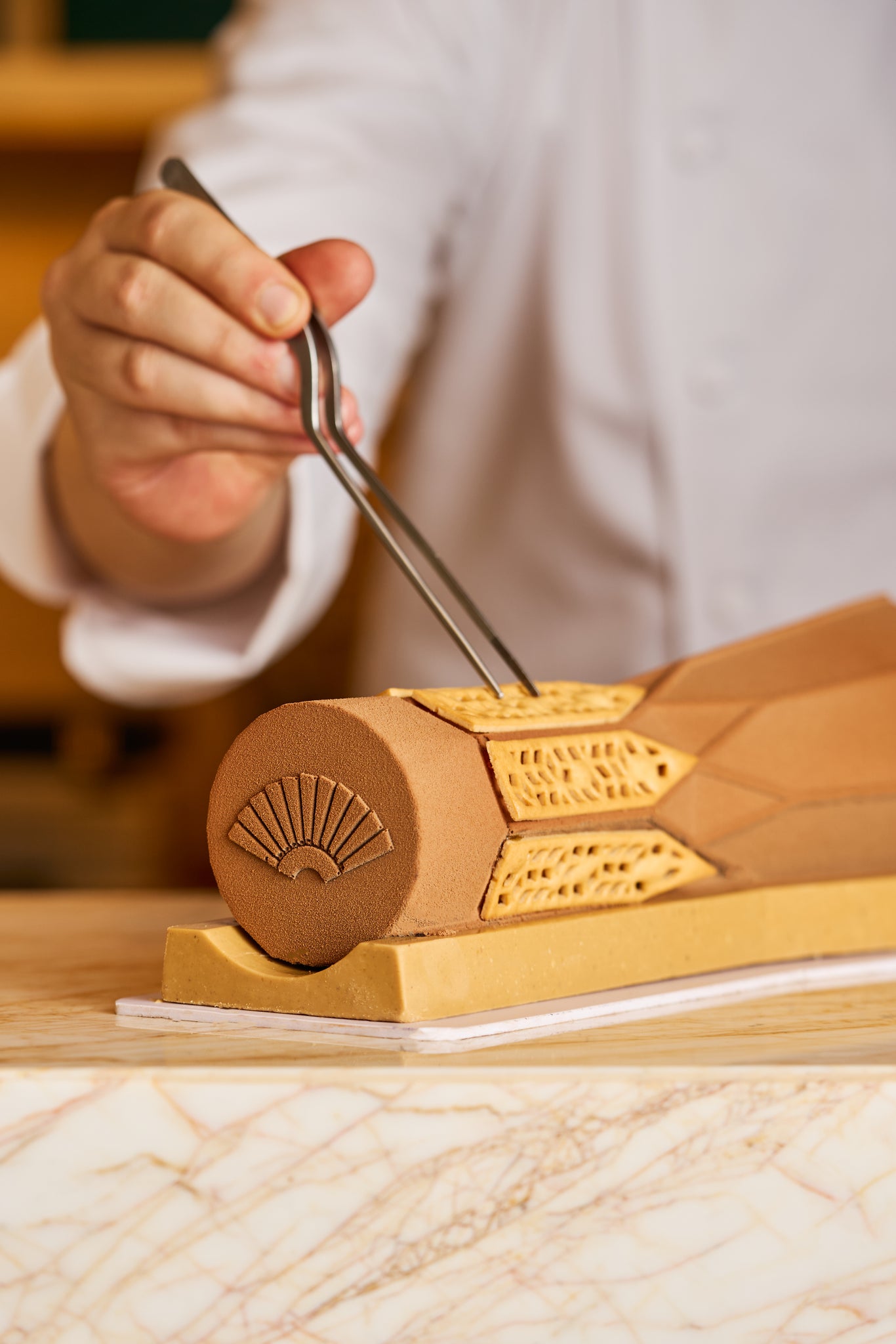Emphasizing the unique charm of the region's Ghaf tree, The Canopy features an artistic blend of tree trunks inspired by the lobby lights. These tempting delights are crafted with a harmonious combination of pistachio kunafa, rich dark chocolate, and sweet dates.