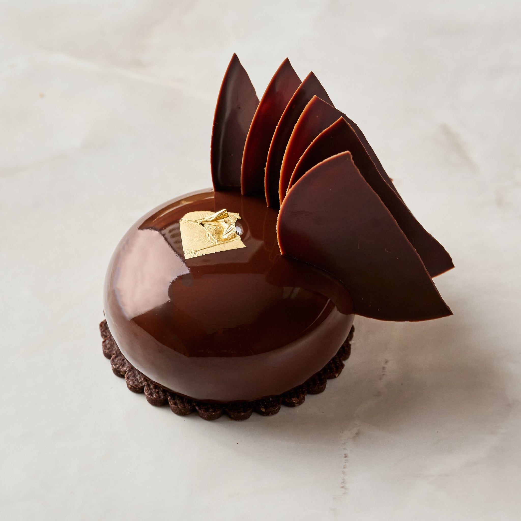 Rich chocolate sponge with crunchy coffee layers, and a touch of caramel.