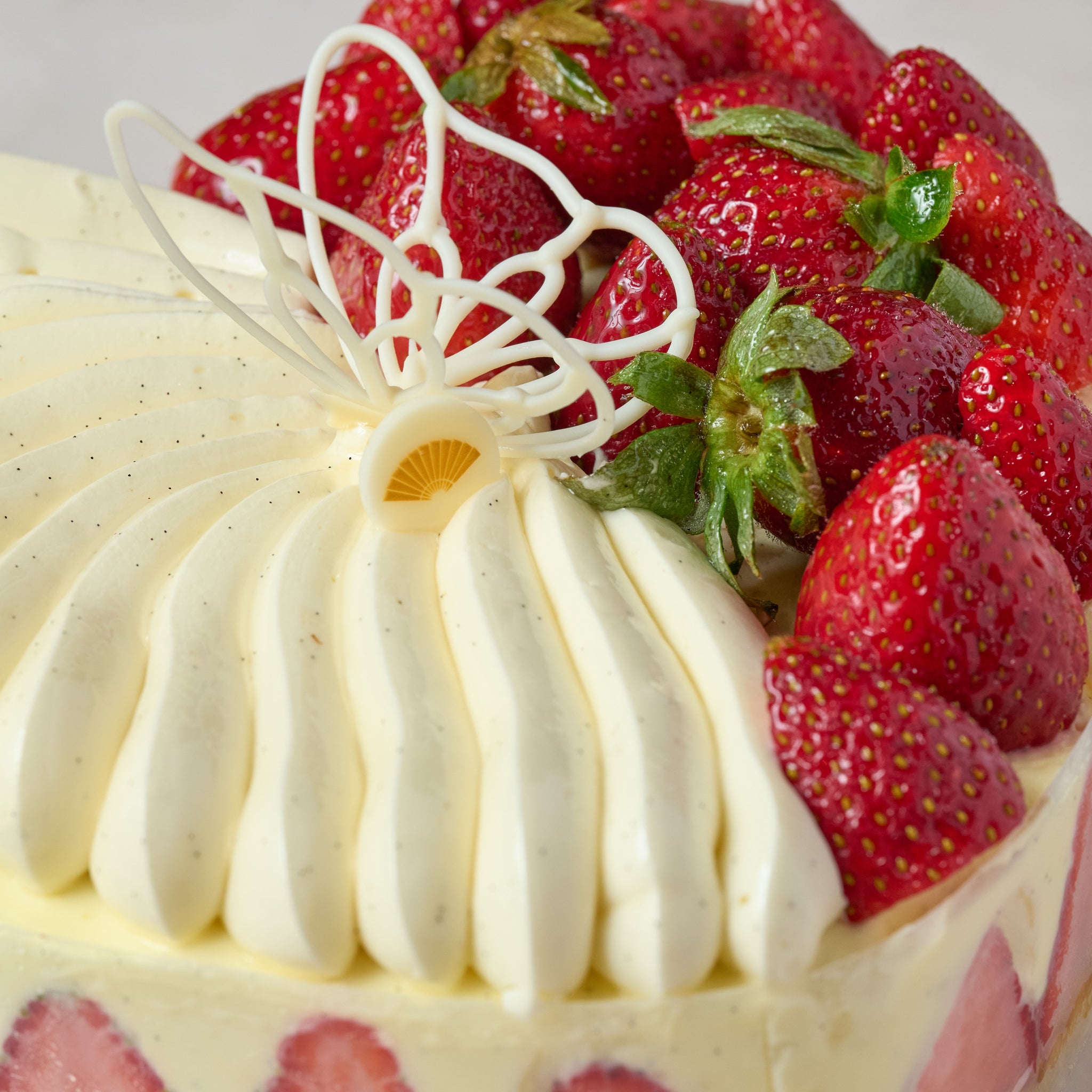 Madeleine sponge, mousseline with fresh strawberry compote and fresh strawberries.