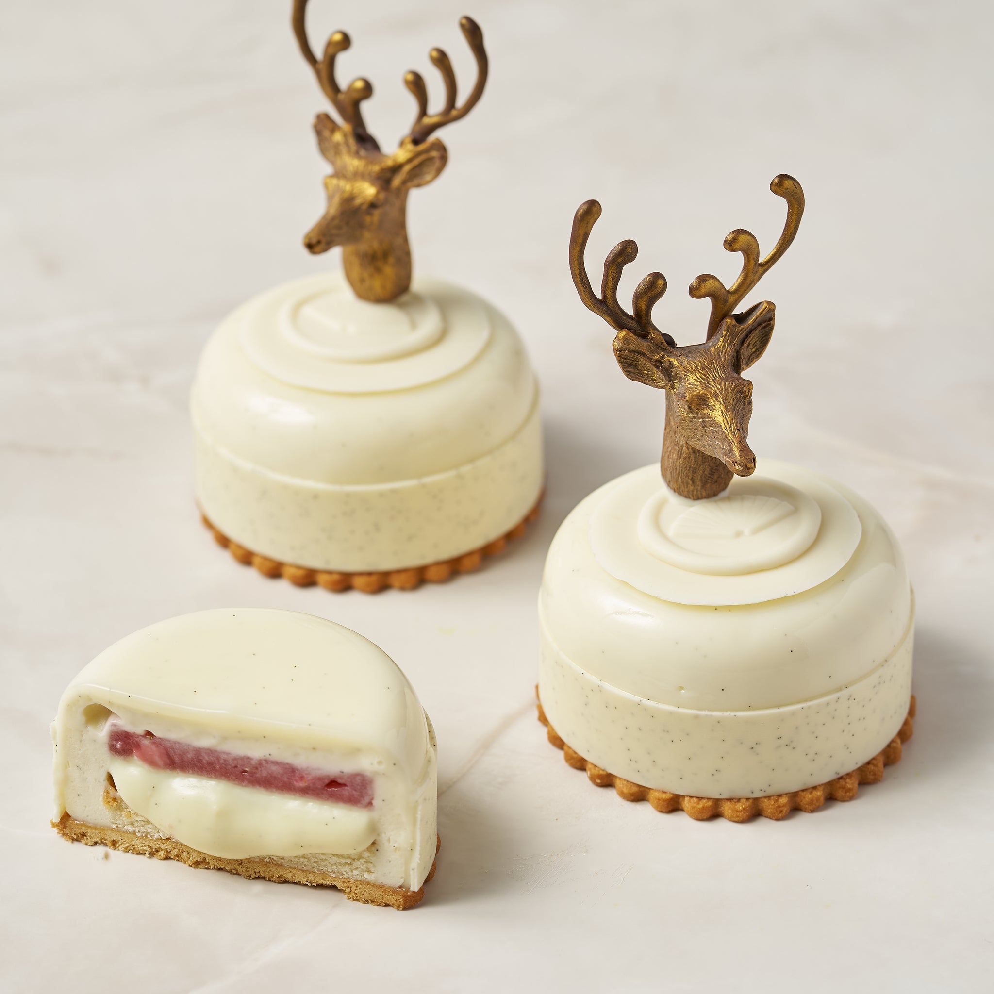Strawberry confit and mascarpone mousse wrapped in silky white chocolate.
