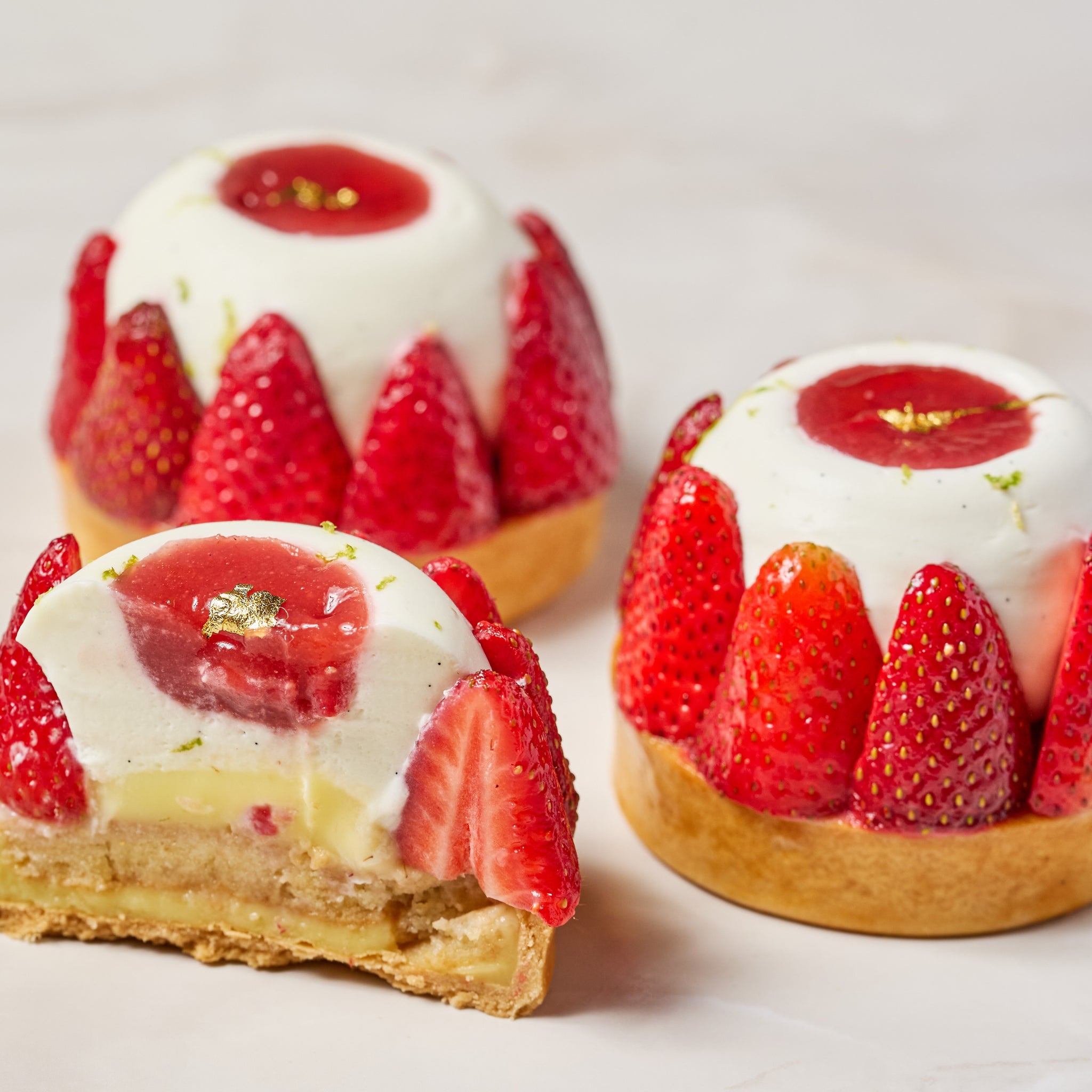 Buttery vanilla tart dough, silky vanilla cream, fresh sweet strawberries, and a cloud of delicate Chantilly cream.
